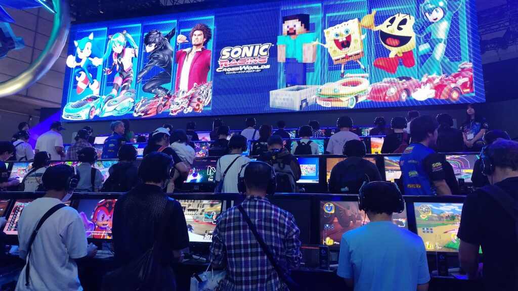 Sega had what looked like a cool way to display people trying out their gamees by stacking them in rows like it was a school play, except with everyone’s backs facing away from people walking past the area so that the focus could be on the games rather than who’s playing them.